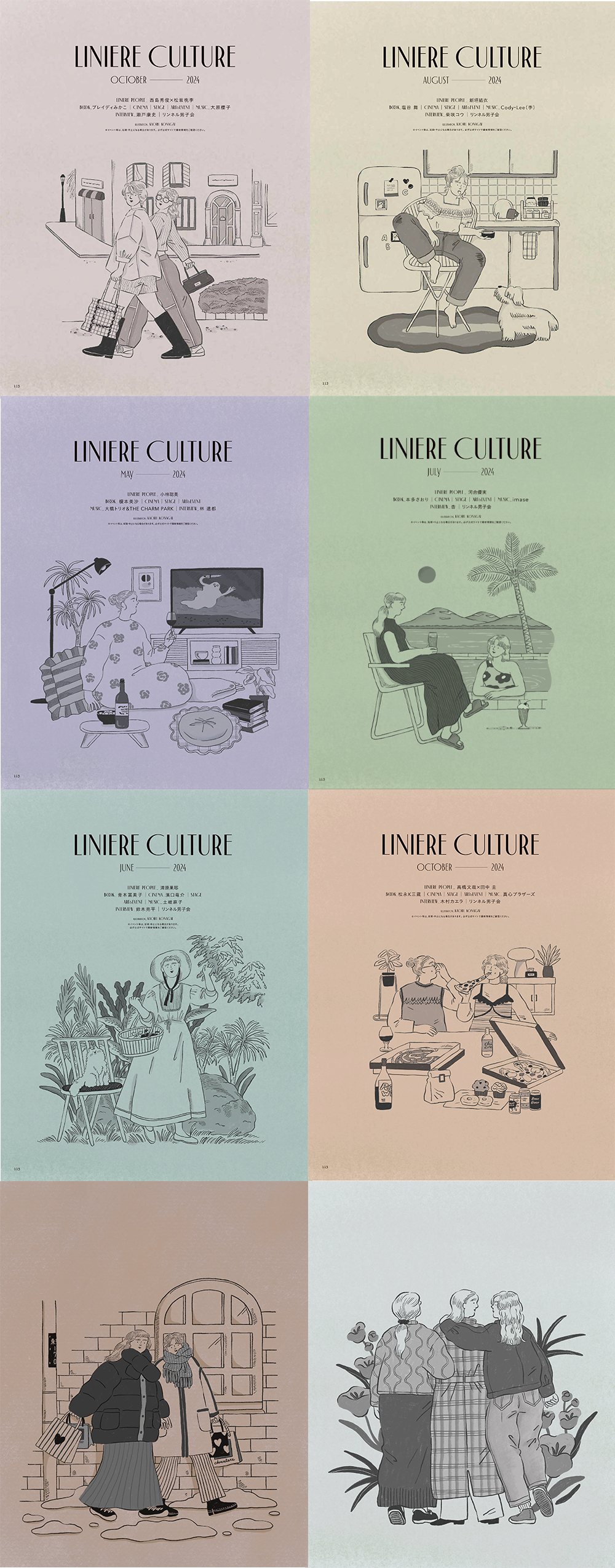 「リンネル」2024年のカルチャーページの表紙イラストを毎号連載担当しました。